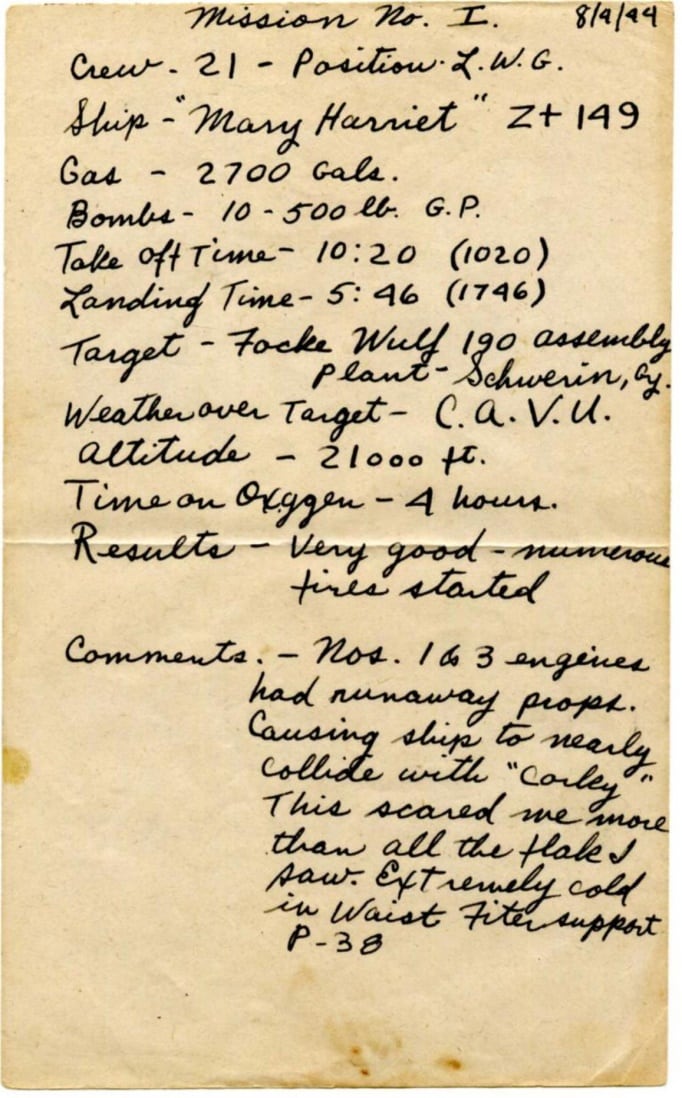 “It was an account of each bomber mission he had flown as he had recorded it when he was nineteen and twenty years old. I had no idea such a record even existed.”