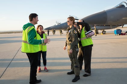 Brig. Gen. Jeannie Leavitt, the first female fighter pilot in the Air Force, who at the time was commander of Nellis’ 57th Wing, also met with Larson and the directors.